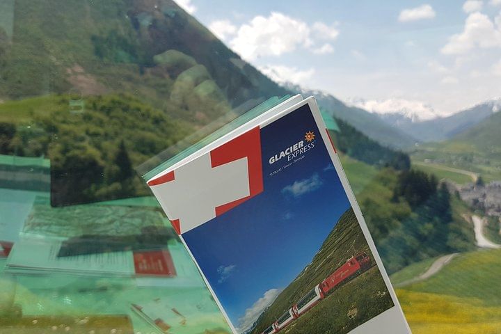 Travel on the worldwide known "Glacier-Express-Train on a full day train roundtrip through Switzerland