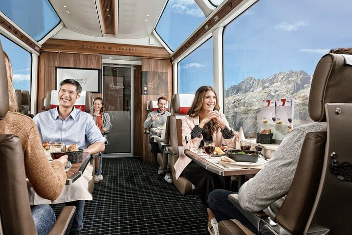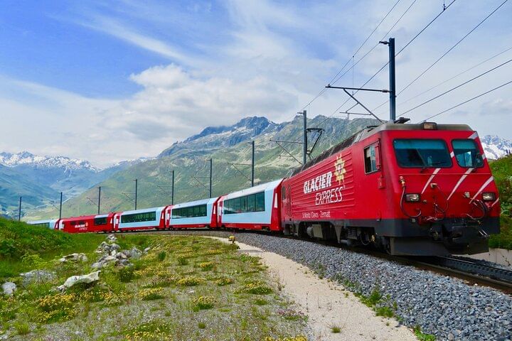 Embark on a self-guided train tour through the scenic wonders of the Swiss Alps with our Glacier Express journey from St.Moritz to Zermatt in 1st class. Enjoy a train ride as you traverse alpine landscapes, charming villages, and iconic landmarks. Marvel at the breathtaking views through large panoramic windows on one of the world's most renowned train routes. This travel promises an unforgettable and personalized exploration through the heart of Switzerland